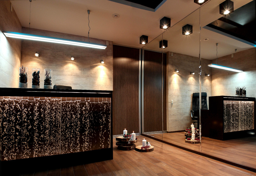 В основе работы лежит ощущение единства с миром природы.Гармоничное сочетание цветов - прекрасное средство для снятия стрессов и избавления от суматохи, которые сопровождают нашу жизнь.Декоративная штукатурка имитирует фактуру натурального камня, плитка - фактуру дерева.Соляная комната задумана в виде зимнего леса. Декоративное освещение само по себе доставляет радость, это как дорогое украшение к классическому наряду. Его не требуется много, чтобы произвести впечатление, но оно обращает на себя внимание и оставляет приятные воспоминания. Год реализации: 2013