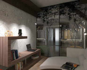 Девиз квартиры - минимализм в сочетании с комфортом. Деревянные балки на потолке, мягкая структура на полу - придают уют и напоминают о прошлом. Блеск стекла, многократное отражение, чистота поверхностей расширяют пространство, делают его загадочным и приглашают заглянуть в будущее. Люстры из мягких шелковых тканей контрастируют с техническим светом. Бесшумно вращающиеся двери. Натуральный камень на полу. Изюминка квартиры - кухня Valcucine - современная и технологичная. Именно использование этих, очень контрастных по фактуре, материалов, помогло сделать этот интерьер стильным, красивым и индивидуальным.