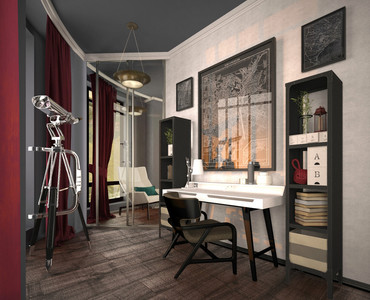 Проект трехкомнатной квартиры был разработан для взрослой динамичной семейной пары. В гостиной композиционной доминантой стала стена с бараньими черепами, над которыми размещено на потолке световое панно, очерченное по контурам широкими полосами из брусьев. Этот уголок станет отличным местом для чтения книг и созерцания пламени камина Dimplex Bingham. Вторая зона – для семейных посиделок перед телевизором, главным элементом в ней стала люстра голландского дизайнера Марселя Вандерса - Flos Zeppelin.Удачно нашел свое место и шкаф от студии Seletti в форме коровы, навевающий мысли о безмятежности скандинавских полей. Он вносит нотку юмора, должно же что-то разбавлять сдержанность интерьера!