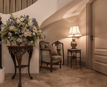 Тонкий росчерк стального поручня подчеркивает динамику монолита лестничных маршей и контрастирует с грубой штукатуркой отделки стен.