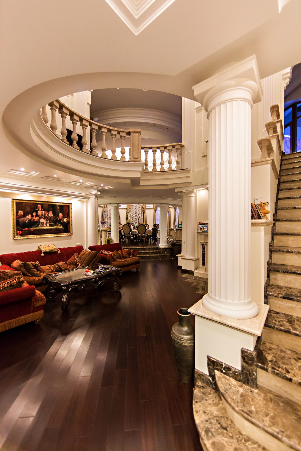 В проекте заложена основная диагональная, композиционная ось, которую замыкает световое пространство эркера. Окна занимают практически все двухсветное пространство и связывают интерьер с природой, символизируя тот самый "свет в конце тоннеля". Реализация проекта 2012 год. Автор проекта и фотографий Черемухин Геннадий.