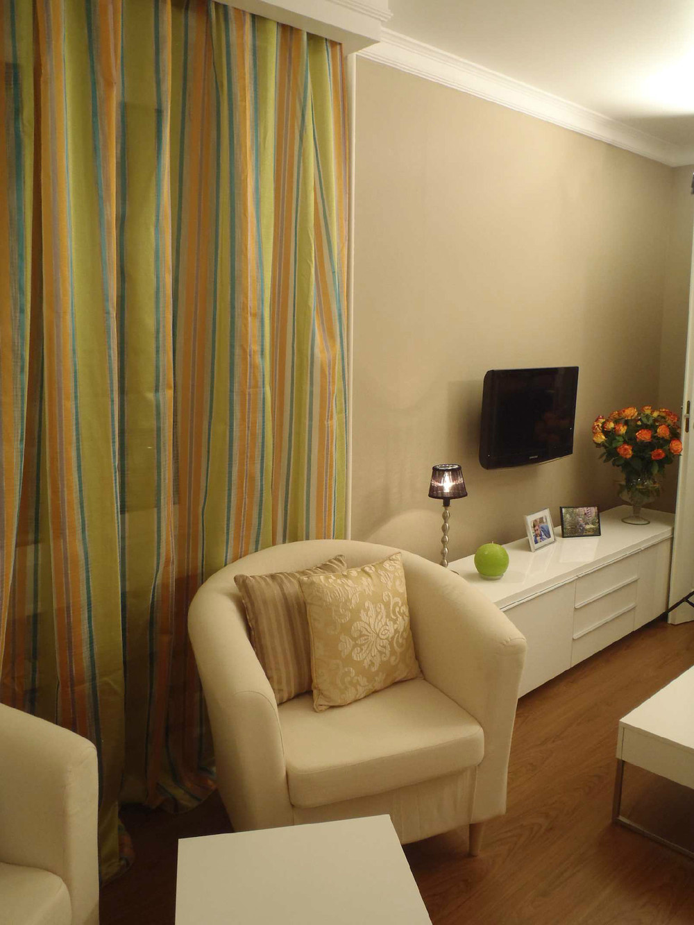 Гостиная для мамы и сына. Основная цель была – создать радостный и открытый интерьер, чтобы отвлечь семью от потери близкого человека.