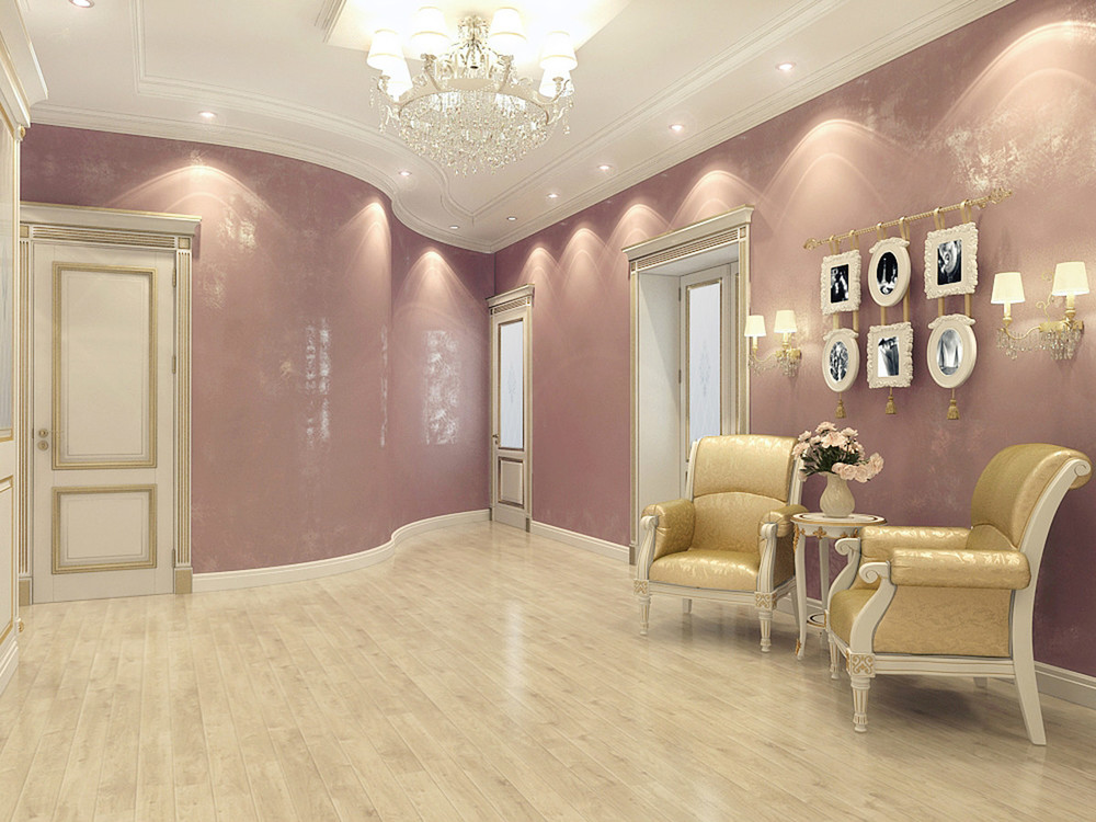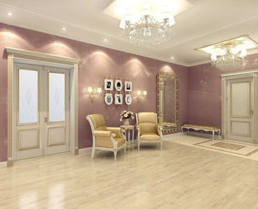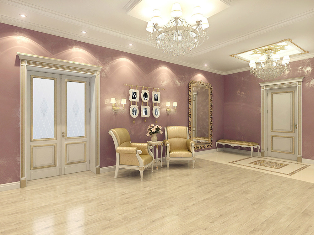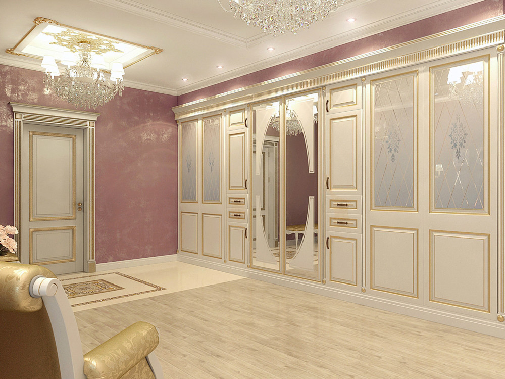 Интерьер квартиры выполнен в классическом стиле. Основной задачей в проектировании стала необходимость большого шкафа для хранения и поэтому по стилистике были выбраны двери коллекции Royal, рисунок на стекле которых повторяется на фасадах распашного шкафа. Благодаря этому шкаф стал некой изюминкой в интерьере прихожей. Эти двери в сочетании со шкафом действительно передают роскошь и богатство всего интерьера. 2013г.