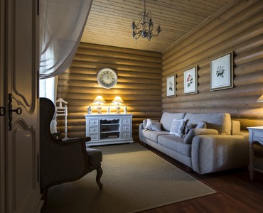 Фотограф: Виктор Чернышев Год реализации: 2010 Это был 100 % декораторский проект. Потому что сама коробка-основа была собрана. Из входящих данных: 2 х этажный сруб из круглого бревна, рыже-коричневый пол, шоколадные стеклопакеты с белыми наличниками. И нужно было это как-то быстро и эффективно сделать красивым, удобным и самое главное - уютным. В целом, можно сказать, что интерьер получился очень теплым. В первую очередь, мы попытались передать эстетику милого загородного дома в стиле пованс и создали этот эффект за счет большого количества аксессуаров. Дом получился немножко французский, немного английский... В нем приятно находиться и зимой, и летом, и особенно весной. Когда первые лучи солнца падают на холщовые скатерти и, пробегая по комнате, согревают диван, на котором, приятно свернувшись клубочком, можно, никуда не спеша, почитать томик Набокова.