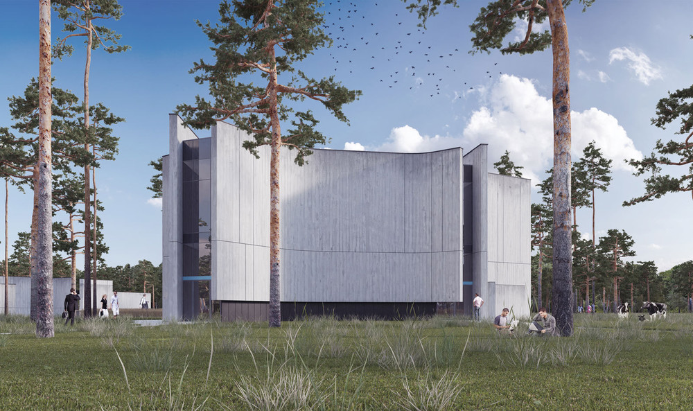 Проект офиса-парка основан на размещении группы зданий в лесном массиве на окраине г. Екатеринбурга. Комплекс включает в себя хаб, центральный офис, здания для рабочих групп, павильоны для уединенной работы, кафе с магазином продуктов и апартаменты, формирующие внутреннюю инфраструктуру комплекса. Геометрия каждого сооружения уникальна и напрямую связана с расположением деревьев и кустарников, находящихся в непосредственной близости к зданиям. Кровли павильонов выступают в качестве площадки для размещения природных компонентов и мест для отдыха.