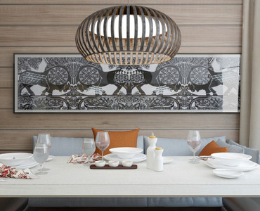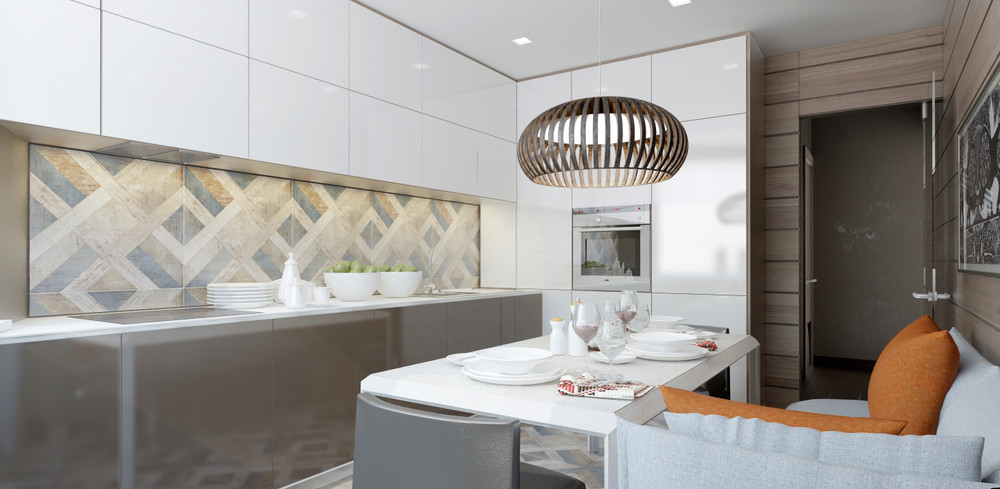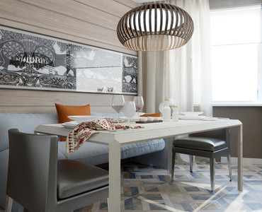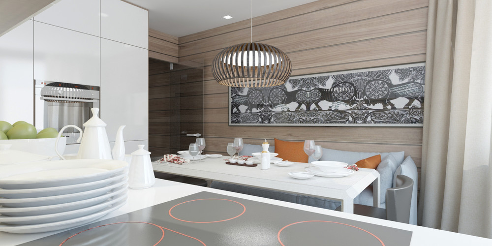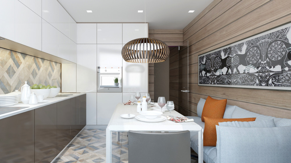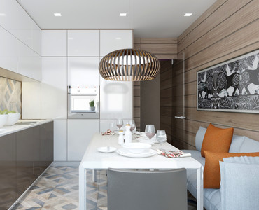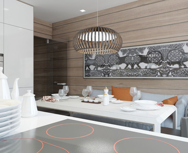 Эта кухня создавалась для семьи из четырех человек, которая любит собираться за обеденным столом, вместе готовить и проводить время друг с другом. В интерьере сочетается современная кухонная мебель с мотивами традиционных элементов белорусской культуры.