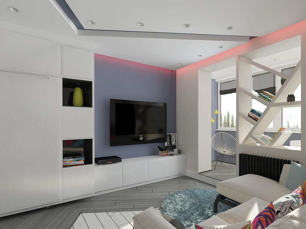 Квартира рассчитана на молодую семью из 2-х человек, которые ведут активный образ жизни, любят современное искусство, яркие краски и идут в ногу со временем.