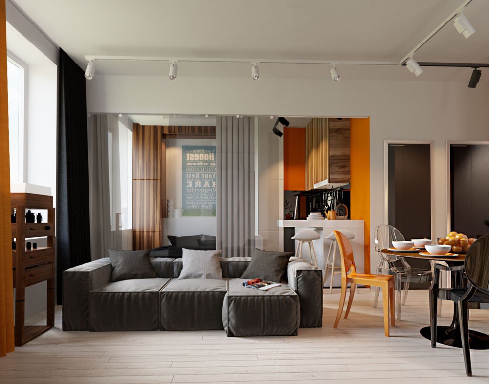 Пространство получилось насыщенным, динамичным и многофункциональным.