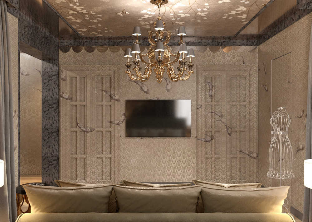 Спальная комната для Нее. По желанию Заказчиков я спроектировала спальный блок для супруги и супруга. Декор спальных комнат также имеет принципиальное отличие. Таким образом, мы внесли элемент игры в повседневной жизни и настроение приключения. Автор проекта: Карина Аветисян Кровать: "Мальта" Обои: ручная работа Визуализация: Алина Сибатова