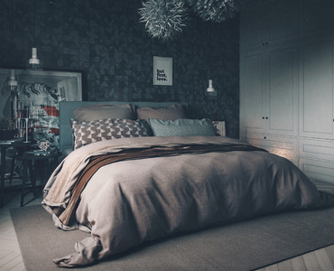 Дизайн-проект спальни в киевской квартире, для молодого писателя. Выполнен в скандинавском стиле. Смешение классических и современных элементов дизайна придают комнате неповторимую атмосферу. Исходящий теплый свет от свечей, притягивает, разрушая полумрачную, дождливую атмосферу, создавая необходимый уют.