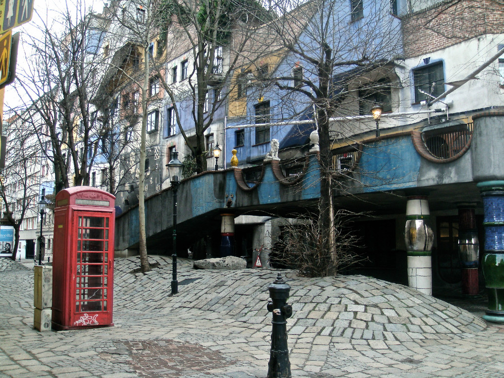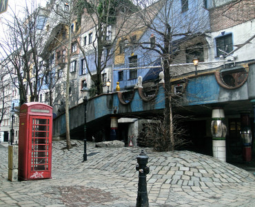 Излюбленная тема Хундертвассера - прямая линия "безбожна". Из-за прямых линий и углов человек никогда не достигнет гармонии. Его Идеальный Дом - это трава на крыше, полы неровные, как лесные дорожки, стены, как морские волны и окна-глаза - каждое индивидуально со своим правом на жизнь.