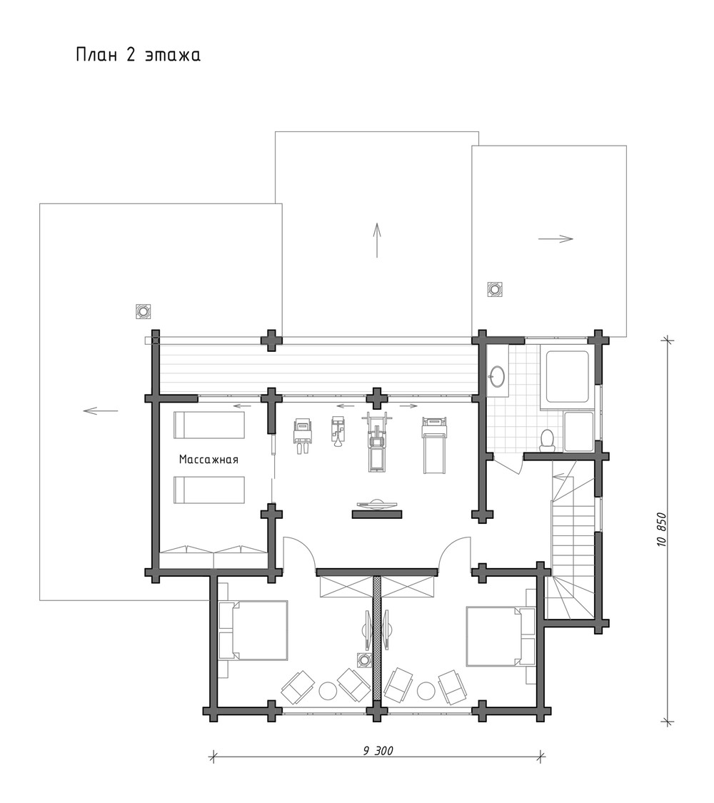 Представленный проект разработан для строительства в Подмосковье. С западной стороны участок имеет крутой склон с лесными насаждениями. Также на участке имеется основной дом из темного бельгийского кирпича. Пожеланием Заказчика было создание дома из клееного бруса для отдыха и приема гостей, расположенного как можно ближе к лесной части участка. Новый дом должен был гармонировать с основным зданием, быть максимально раскрытым в сторону леса и повлечь за собой минимальные вмешательства в естественный ландшафт. Широкие окна "в пол" дают возможность ощутить себя максимально близко к природному окружению. Тренажерный зал на 2 этаже с видом на лес придает дополнительной бодрости от тренировки. Глубокая терраса и балкон помогут спрятаться от агрессивного западного солнца в летний вечер. А в гостевых спальнях будет приятно пробуждаться от бодрящих лучей восходящего солнца.