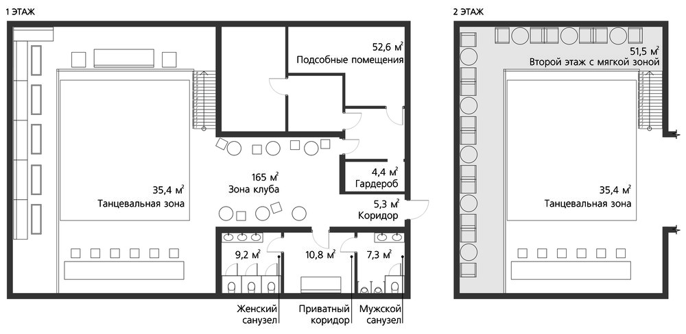 На ярком танцполе место хватит всем, а цветные прожекторы выделят самых заводных. Если захочется передохнуть, можно устроится за барной стойкой, откуда видно весь зал. Так же внизу есть диваны со столиками, на которых может расположиться большая компания, места хватит всем. А если захочется перекусить и остаться вдвоём, то на втором этаже посетителей ждут удобные кресла со столами. И оттуда так удобно наблюдать за танцующими.